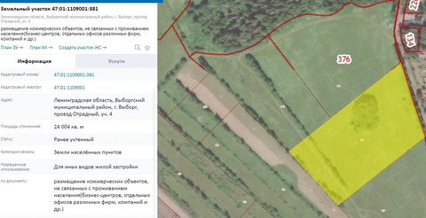 Участок комерческого назначения в г. Выборг 2,4 га.