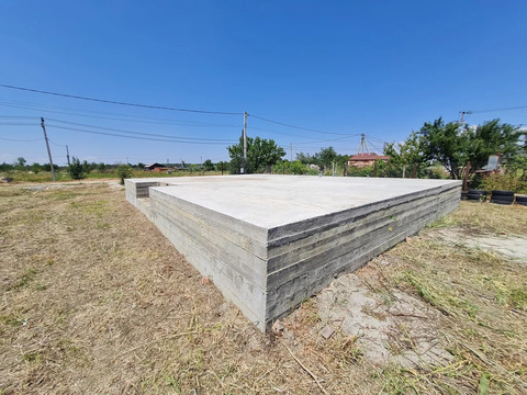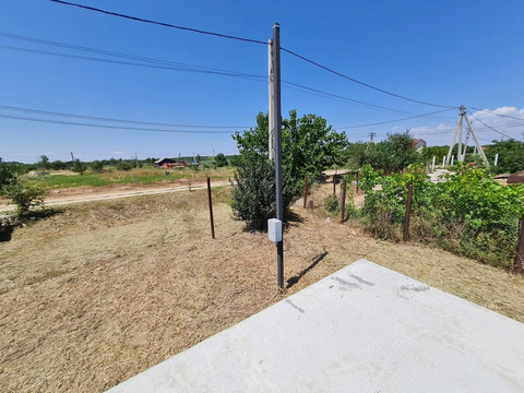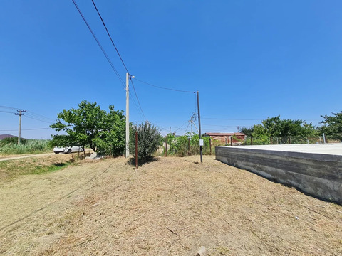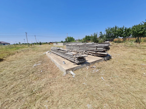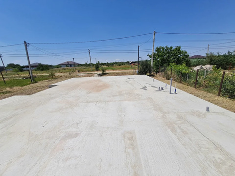 На земельном участке залита плита 9x12 м., участок поднят Коммуникации также на высшем уровне: электричество доступно с тремя фазами и мощностью 15 кВт на столбе.