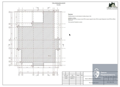 Участок ровный прямоугольной формы с удобным подъездом. На участке возведен качественный монолитный фундамент 16.9х13.1м. с заложенными коммуникациями (центральная канализация оплачена, вода – скважина, магистральный газ по границе участка), бытовка для рабочих, участок огорожен забором по периметру. Есть проект индивидуального загородного дома, общая площадь строения 254.1 кв.м.
