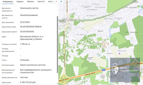 Категория земли: Земли населённых пунктов. Вид разрешённого строительства: Для индивидуального жилищного строительства. Кадастровый номер 50:20:0000000:306939.