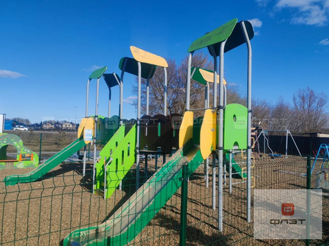 Есть современная детская площадка, кафе, продуктовый и строительный магазины, в ближайшее время запланировано строительство детского садика.