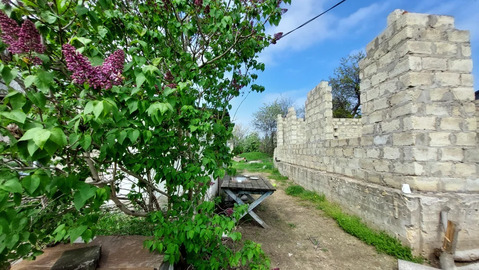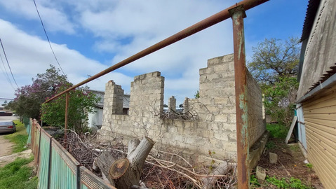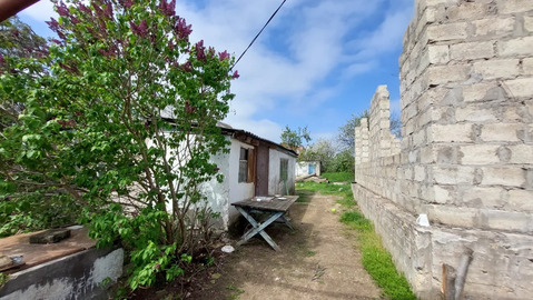 На участке имеется ветхое строение под снос. Кроме того есть недостроенное здание из блока (фундамент, стены).