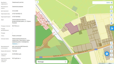 Участок промышленного назначения 6,6 га в д. Разметелево.