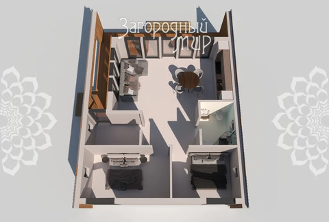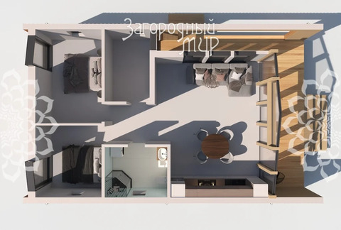 В доме уютная кухня-гостиная, 2 спальни, просторный холл, санузел.