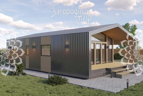 У дома кровля – профнастил Grand Line 0.5 Rooftop, фундамент – железобетонные забивные сваи 150*150 мм, утепление пола и кровли -плита минераловатная 250 мм, утепление внешних стен - плита минераловатная 150 мм, внешняя отделка дома - профнастил Grand Line 0.5 Rooftop/вагонка Штиль, окна – тройные стеклопакеты.
