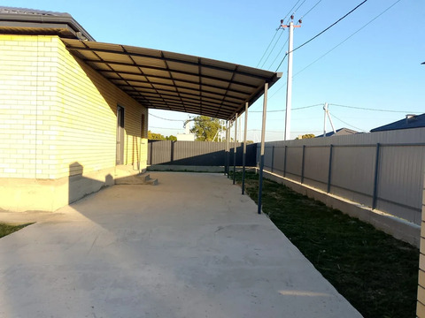 Сделана предчистовая отделка внутри,по периметру дома установлен забор с откатными воротами,забетонирована площадка под стоянку авто,сделан навес и выведен кран уличный.