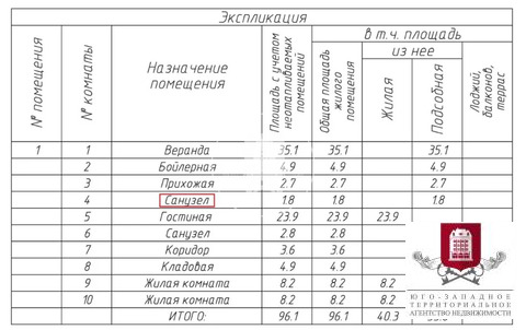 общая площадь: 96,1 м2.