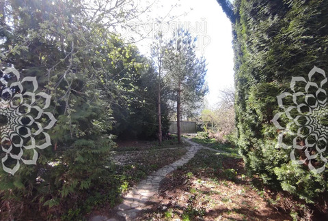 Участок. 8,3 сот., разноуровневый рельеф и лесныё хвойные деревья, заезд с двух улиц. Отдельно стоящая баня, беседка, качели, патио, проложены дорожки. Посажено много цветов, фруктовых и декоративных деревьев и кустарник.