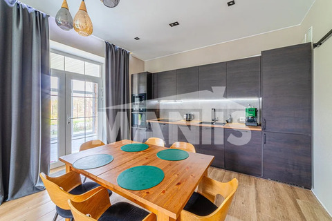 Дом оснащен современными инженерными системами, включая теплый пол, канализацию, водоснабжение и всей необходимой бытовой техникой.