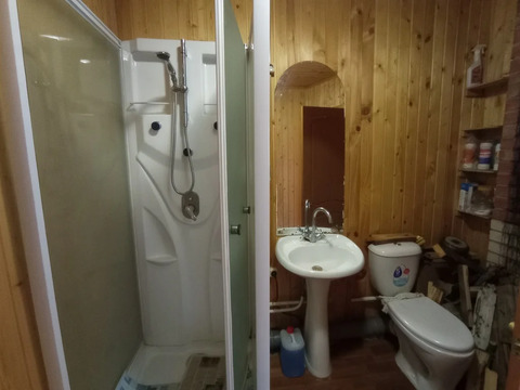 Второй дом -30 кв.м.- брус, крыша шифер, окна ПВХ. Удобная планировка дома! Тамбур, кухня, две комнаты, с/у. Санузел с душевой кабиной, раковиной и унитазом. Год постройки 2004.