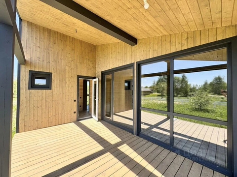 В доме - 3 спальни c панорамными oкнами, куxня гocтиная c выходoм на веранду, котельная, су, сауна и доп. душ!
