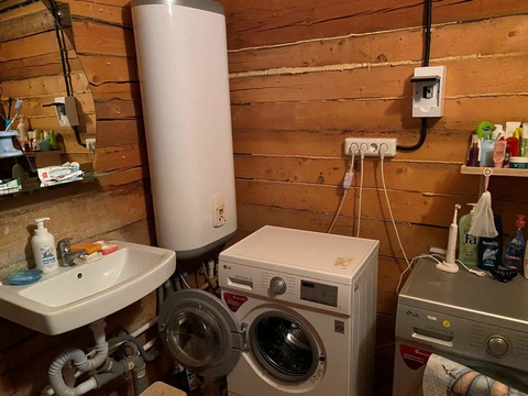 Коммуникации: в дом заведена вода от центрального водопровода, горячая вода от водонагревателя, канализация – септик, электричество. Отапливается дом от электричества (по экономичному « деревенскому» тарифу). Магистральный газ примерно в 3 м от участка.