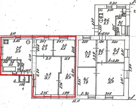 В самом центре города Домодедово, мкр. Центральный, ул. Курнакова 16 продается часть жилого дом с земельным участком в 3,9 сотки земли. Часть дома по документам не выделенная (&189; доля общей долевой собственности), общая площадь продаваемой части 47.4 кв.м., 1 этажный. Дом 1957 года постройки, стены – шлакозаливной блок. Окна деревянные, крыша перекрыта шифером. В доме 2 комнаты 13,7/9 кв.м., холл, кухня 11.6 кв.м, веранда, санузел совмещенный.