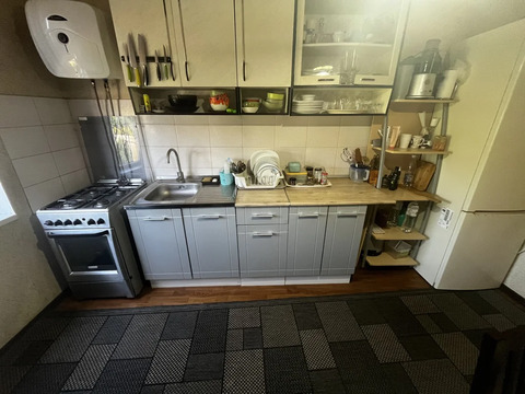 В доме два этажа, сделан косметический ремонт. На первом этаже кухня, гостинная, спальня. На втором этаже три спальни.