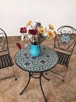 Из окон дома открывается великолепный вид на море и окрестности. В саду посажены экзотические растения.