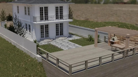 На втором этаже из двух спален выход на балкон, между этажами предусмотрена открытая внутренняя лестница.