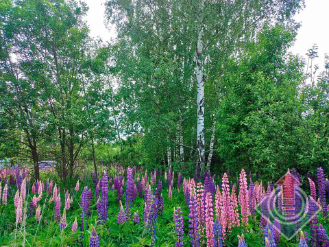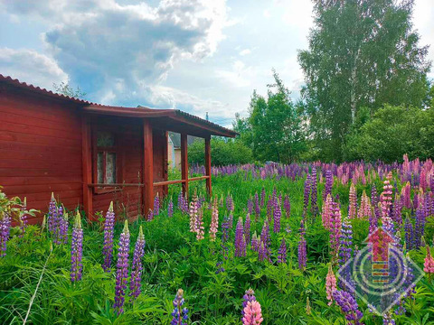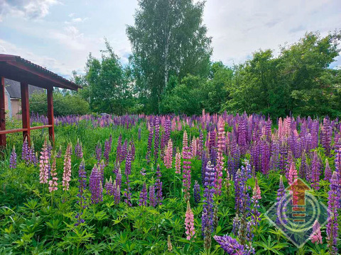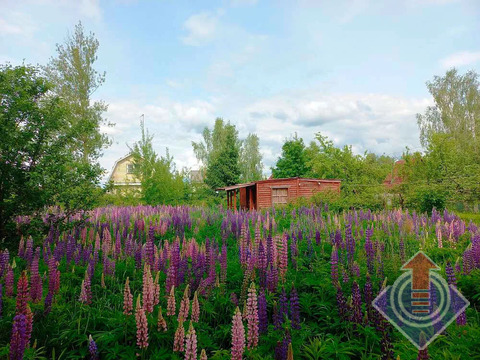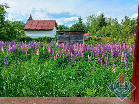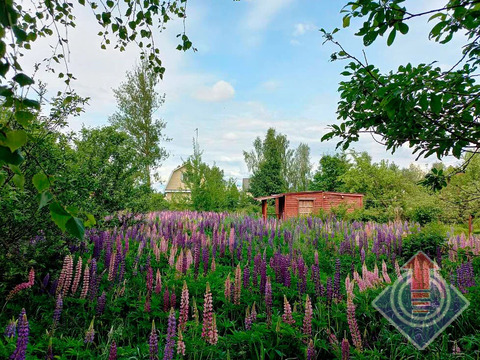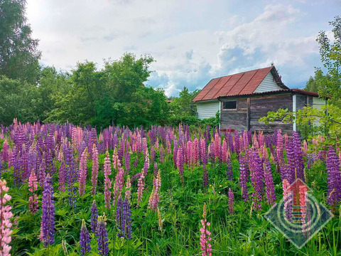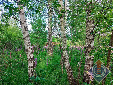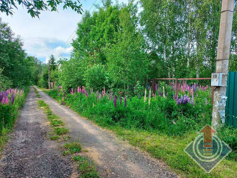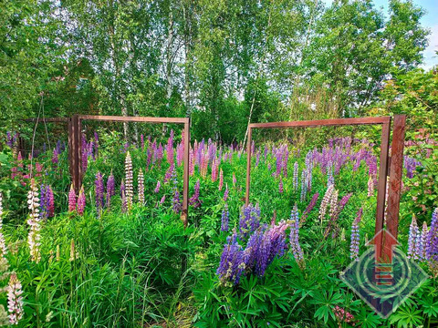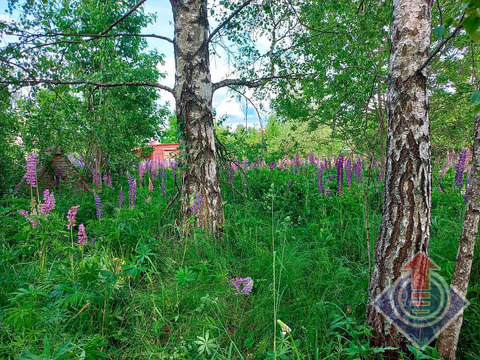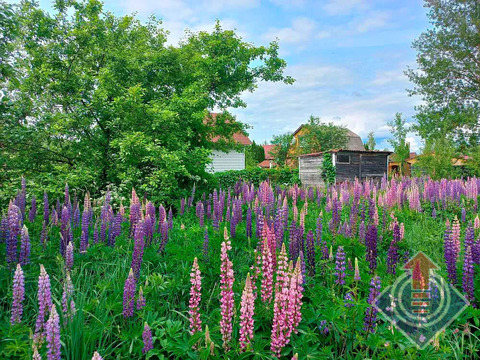 Земельный участок 10 соток (20 x 50 м). Участок огорожен сеткой-рабицей по всему периметру, с въездными воротами со стороны улицы. С трех сторон граничит с соседними застроенными участками. На территории растут яблони, дающие вкусные плоды, а в уголке расположились высокие березы, создающие приятную тень. В июне участок украшен цветущим люпином.
