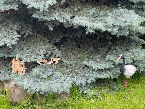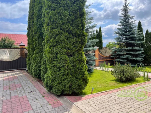 Ландшафтный дизайн: туи, ели, клумбы, мощеные дорожки.