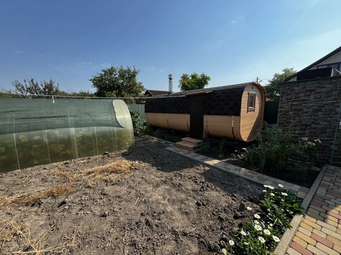 Двор и внутренние дорожки выложены плиткой. Двор покрыт навесом.Имеется баня, летняя беседка и мангальная зона.