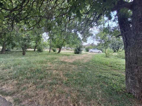 Участок озеленен фруктовыми деревьями, такими как четыре яблони, груша, персик и виноград, что создает благоприятные условия для садоводства и повышает экологическую ценность объекта.