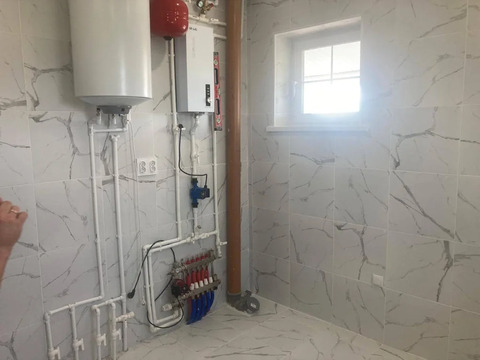 В дом подведены все коммуникации: электричество 15кВт, водоснабжение (скважина) и канализация (септик).