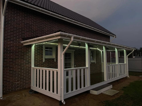 утеплен пенополистеролом ППС 16Ф толщиной 50 мм, и отделан фасадными панелями АМК, имитирующими кирпичную