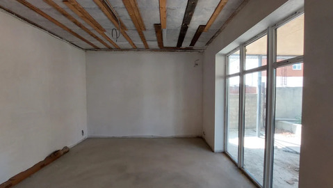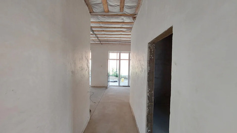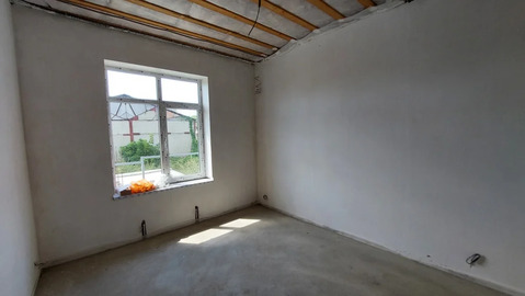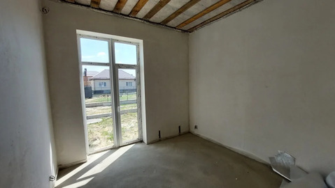 В доме три изолированные спальни, кухня-гостиная, коридор, совмещённый санузел, терраса. Черновая отделка - бетонная стяжка, ровные оштукатуренные стены, потолок утеплён, подшит досками.