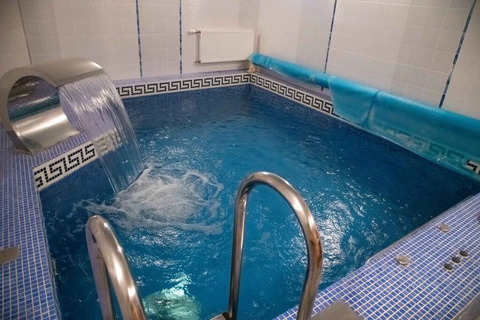 в цокольном этаже расположена зона спа с бассейном и сауной имеющей режим русской бани.