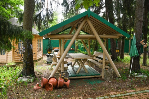 Участок очень зеленый, больше 60 сосен и елей, собственный виноградник, чистейший воздух.