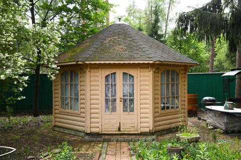 На участке большая, закрытая беседка, хоз.блок, летний туалет, крытая парковка.