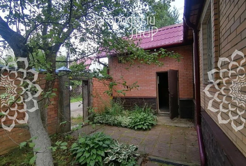 Построенный из бруса, внешне дом отделан облицовочным кирпичом, кровля - металлочерепица, окна - стеклопакеты.