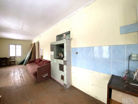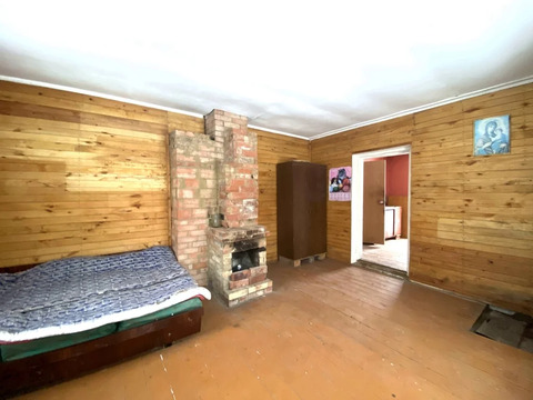 Дом из газосиликатных блоков, оштукатурен. Первый этаж: прихожая, кухня, большая комната, удобная лестница; второй этаж: холл, две изолированные комнаты. Большое чердачное помещение, при желании можно сделать несколько комнат. Отопление от печи с встроенным камином.