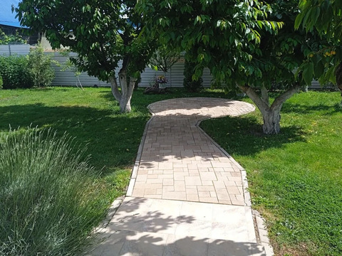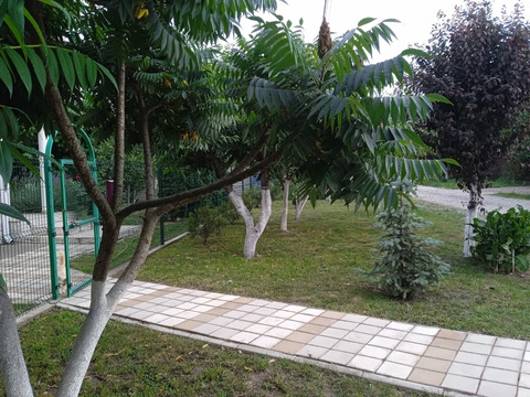 На участке высажены черешня, вишня, крыжовник, груша, яблоня, виноград, смородина и хвойные насаждения.