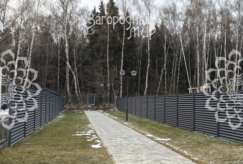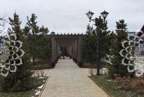 Участок ровный, прямоугольный, 6 сот.. Огорожен красивым металлическим забором с каменными столбами в общем стиле посёлка. Бетонная дорожка к крыльцу, крытый навес с площадкой на две машины. Все центральные коммуникации действующие, заведены в дом и разведены по дому: магистральный газ (установлен газовый котёл и радиаторы отопления), водопровод, канализация, электричество.