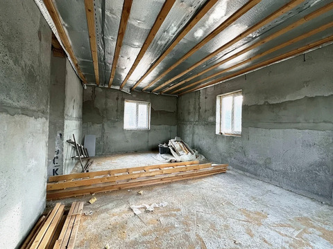 Скоро запоют соловьи и солнечные лучи снова будут греть душу и тело… и так захочется сбежать из каменных джунглей…?! Разрешите предложить одну идею… Предлагаем Вашему вниманию новый дом, на свайно- ростверковом + монолитная плита фундаменте, построенный из панелей полистиролбетона (тёплые, не требуют дополнительного утепления). Внешние стены в 400 мм толщиной, несущая перегородка 300 мм. Дом уже возведённый под надежную кровлю со снего-держателями, установлены окна ПВХ, высокие потолки! В нем предполагалось 3 изолированные комнаты, просторная кухня-гостиная в 33 квадрата, два санузла, котельная, коридор и лестница на второй этаж, но кончено же Вы сможете сделать именно так как Вам нужно). Участок 10 соток, сухой, ровный, почти квадратной формы, размеры 25 на 36 метра. Задняя часть участка граничит с лесом, всего 2 км от города Егорьевск! Свет оформлен (220В до 8 квт), есть скважина в 28 метров, магистральный газ по границе участка! Дом полностью готов для выполнения любой Вашей фантазии по отделке, никакой чужой ауры, не нужно переплачивать за «чужой ремонт» что Вам все равно не подойдет по вкусу! Отличный вариант чтобы начать все с «чистого листа» и не терять время на проекты и строительство…