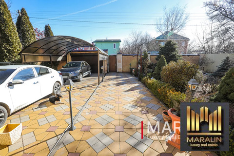 г.Ростов-на-Дону, район Малиновского/Таганрогская. К продаже представлен жилой дом, расположенный на земельном участке 600 м2. Взрослый ландшафт из сортовых растений. Для парковки смонтирован навес на два автомобиля. Ролл-ворота с автоматическим приводом. По периметру участок огорожен кирпичным забором. Дом решен в два этажа, общей площадью 260 м2. Стены кирпич, облицованы дагестанским камнем.Первый этаж: входная группа-холл, кухня-столовая, гостиная, санузел, бойлерная. Второй этаж: 2 спальные комнаты, санузел, полноценный мастер бедрум. Изюминка дома-это натуральный, штучный, фигурный паркет.
