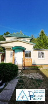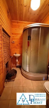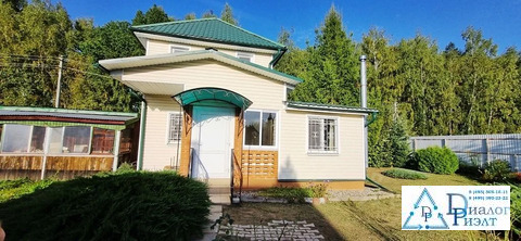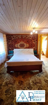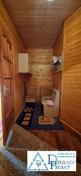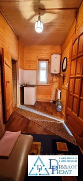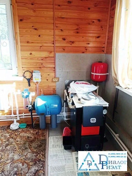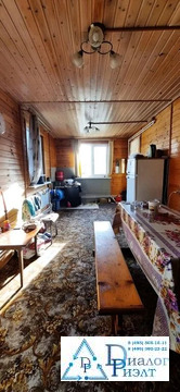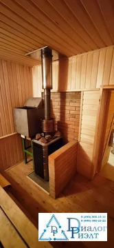 Второй дом из блоков обшит сайдингом, на первом этаже кухня, спальня, сауна, санузел, на втором этаже большая спальная комната. Дом отапливается при помощи твердотопливного котла, по дому проведены батареи.