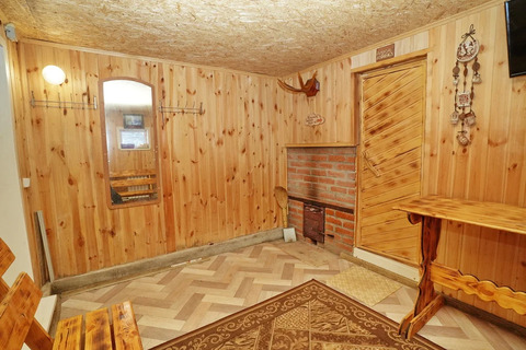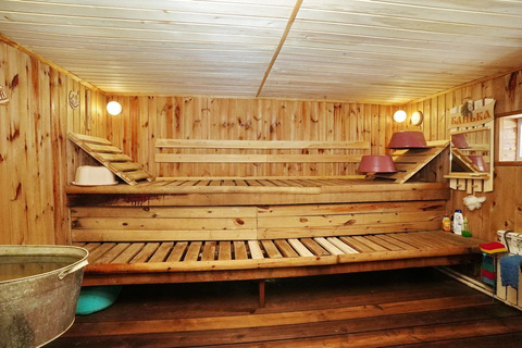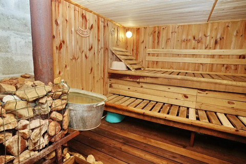 Гараж не только вместительный, в него заведена вода и установлены автоматические ворота. Также имеется яма и комбинированное отопление: газовое и твердотопливный котел. Теплая баня с водоснабжением станет отличным местом для релаксации после работы.