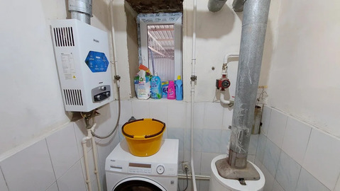 Коммуникации. Центральное водоснабжение, плюс в задней части двора есть скважина глубиной 25 метров с новым мощным насосом, электричество мощностью 15 кВт, газоснабжение, в доме установлен газовый котёл и газовый водонагреватель.