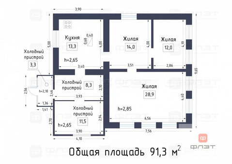 площадь дома 91,3 кв.м.