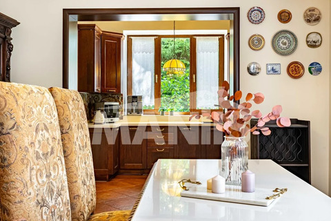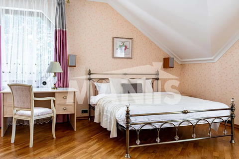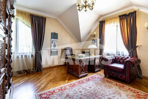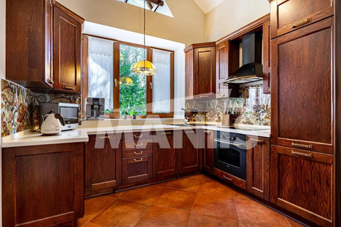 Эксклюзивный дом площадью 522 кв.м., с дизайнерской отделкой в стиле современного классицизма, предлагает 4 просторные спальни с индивидуальными ванными комнатами, гардеробами и выходом на террасы с потрясающим видом на лес.
