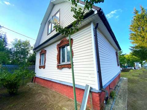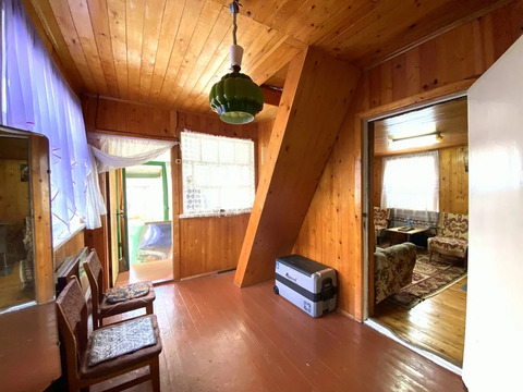 Двухэтажный дом, общей площадью 70 кв. м. Первый этаж: терраса, холл свободный, три комнаты; второй этаж: просторная спальня.