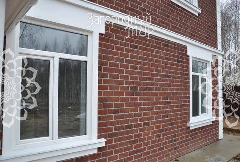 Построенный из газобетонных блоков BONOLIT D500, дом внешне отделан специальной фасадной плиткой с вентиляционным зазором и украшен белым рустом по углам здания. Дом. стоит на утепленной фундаментной плите 30см с двойным армированием, с выполненной дренажной системой для отведения воды. У дома