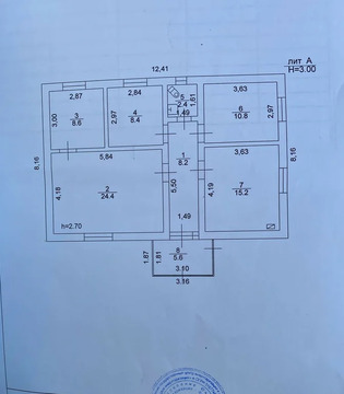 В доме 3 изолированные комнаты (10,8 кв.м., 8,6 кв.м., 8,4 кв.м.), большой зал (24,4 кв.м.), просторная кухня (15,2 кв.м.), коридор (8,2 кв.м.), совмещенный сан.узел., высота потолков 2,7 м., закрытая веранда с теплым полом (5,6 кв.м.).