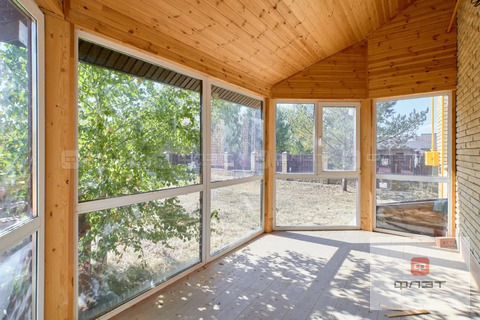 Из кухни выход в летнюю крытую веранду с панорамным остеклением. Здесь вы можете сделать летнюю обеденную зону или зимний сад. На заметку - идеальное место для весенней рассады. Есть выход на территорию двора.