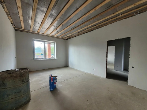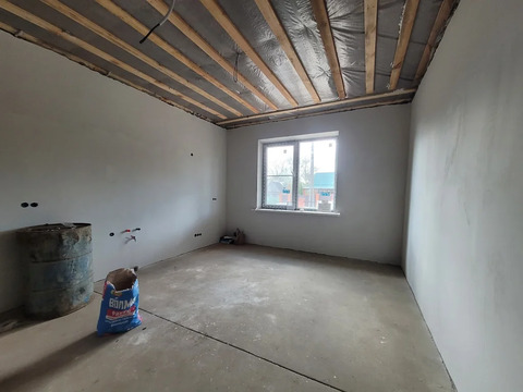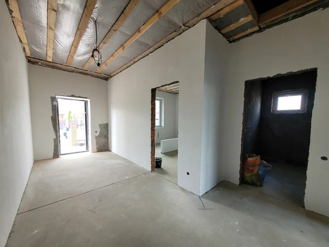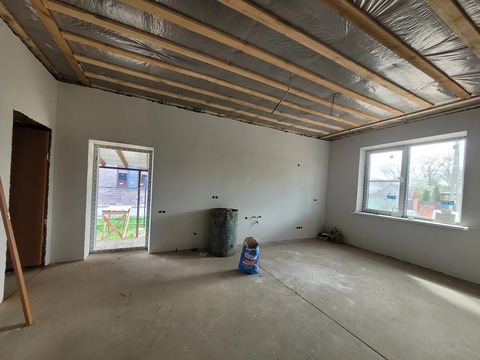 В доме 3 светлых спальных комнаты, просторная кухня гостиная с выходом на крытую террасу. Полностью готова разводка электроэнергии с выводом розеток и выключателей, сплит системы и ТВ во всех комнатах. Совместный санузел, установлены выводы под ванную, раковину, унитаз-биде. Кладовая- котельная комната, так же имеет выводы под стиральную машину и раковину, установлен двух контурный котел, с этой комнаты есть выход на чердачное помещение.