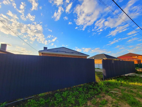 Участок 5.5 сотки, огражден по периметру участка металлопрофилем с распашными воротами.