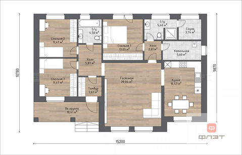Площадь дома: 130 кв.м (119 кв.м жилая + 11 кв.м терраса).