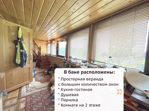 - Баня с комнатой отдыха. Площадь дома составляет 64. 5 м2. Материал стен - бревно + каркасно-щитовые, обработаны герметиком. Фундамент - ленточный армированный. Проведено грамотное зонирование - это создает эффект свободного пространства, который можно выгодно оформить с помощью дополнительных деталей и обыграть на ваш вкус. Что делает проживание в доме более комфортным, положительно влияет на настроение жильцов. На первом этаже бани располагаются: терраса, просторная кухня-гостиная, душ и парилка. На втором этаже находится просторная комната. Рядом дорожки выложены плиткой.