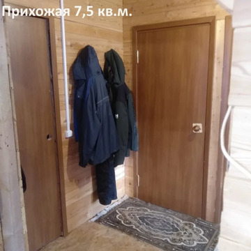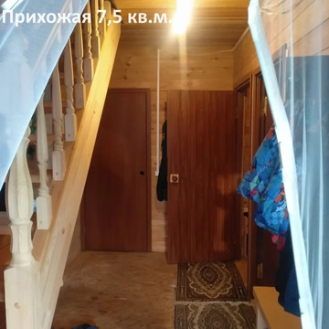 Первый этаж кухня-гостиная 20 кв.м. (диван, стол, лавочка, столешница, полка для посуды со светильником, кухонный шкаф, умывальник с подогревом, газовая плита, карниз, тюль, розетки, выключатели), комната 10,5 кв.м. (2 кровати, 2 матраца, компьютерный стол, стул, раскладной стул, карниз, тюль, шторы), спальня 9 кв.м. (2 кровати, 2 матраца, раскладной стул, карниз, тюль), помещение 6,5 кв.м. для размещения санузла (сундук, стойка), прихожая 7,5 кв.м. (бокс с интернет оборудованием, электросчетчик, вешалки для одежды, зеркало). Потолки 2,56 метров. Лестница добротная из клеёного дерева.